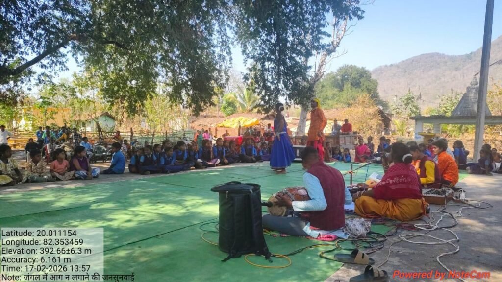 यह कार्यक्रम ग्राम *पीपलखुटा, कांडसर एवं बनवापारा* में सफलतापूर्वक संपन्न हुआ। अभियान के दौरान लोकगीतों एवं सांस्कृतिक प्रस्तुतियों के माध्यम से ग्रामीणों को वनाग्नि से होने वाले नुकसान के बारे में अवगत कराते हुए वनों की सुरक्षा हेतु सजग एवं जिम्मेदार बनने के लिए प्रेरित किया गया।