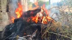 “रसोई में आग कैसे लगी, हमें बिल्कुल पता नहीं चल पाया। लेकिन रसोई के सामने पराली का ढेर पड़ा हुआ था। अचानक धुआं उठता देख बाहर भागे, तब तक रसोई का सामान जलना शुरू हो चुका था।”