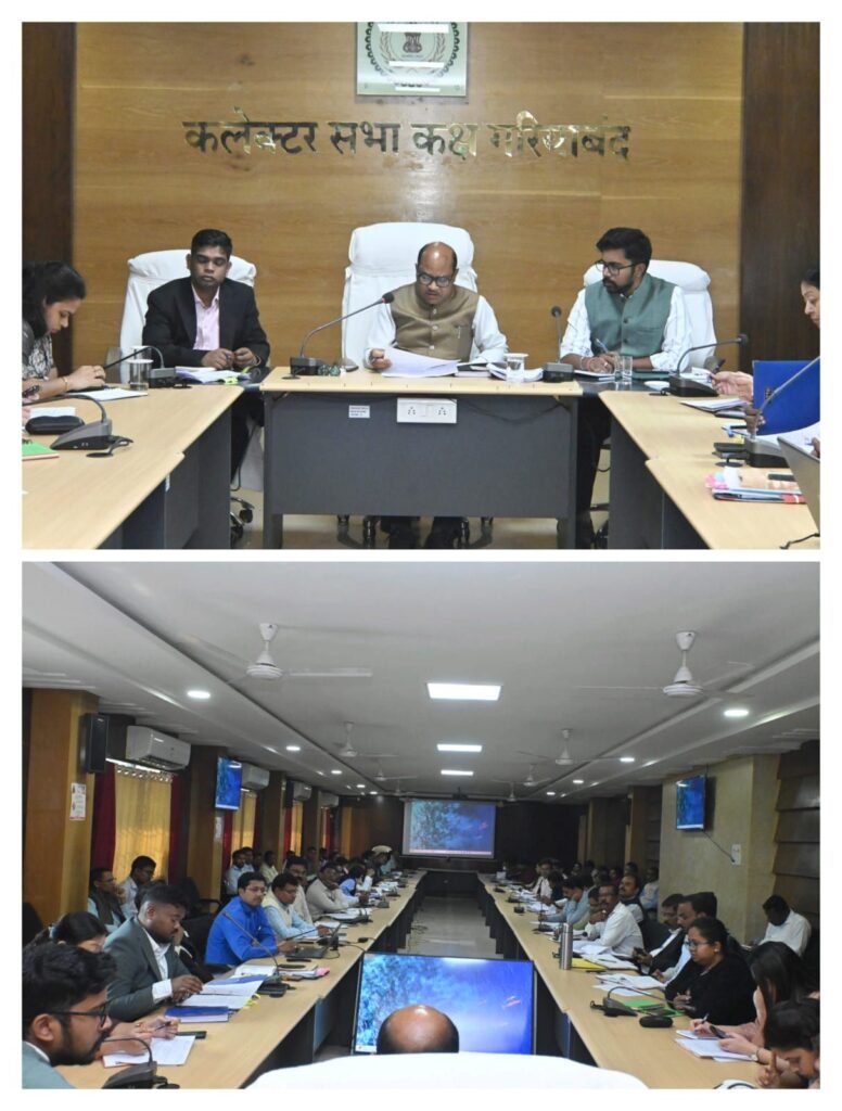 इस दौरान जिला पंचायत के सीईओ श्री प्रखर चंद्राकर, अपर कलेक्टर श्री पंकज डाहिरे, अनुविभागीय अधिकारी, विभिन्न जिला स्तरीय विभागों के अधिकारी, जनपद सीईओ, नगरीय निकायों के सीएमओ बैठक में उपस्थित रहे।