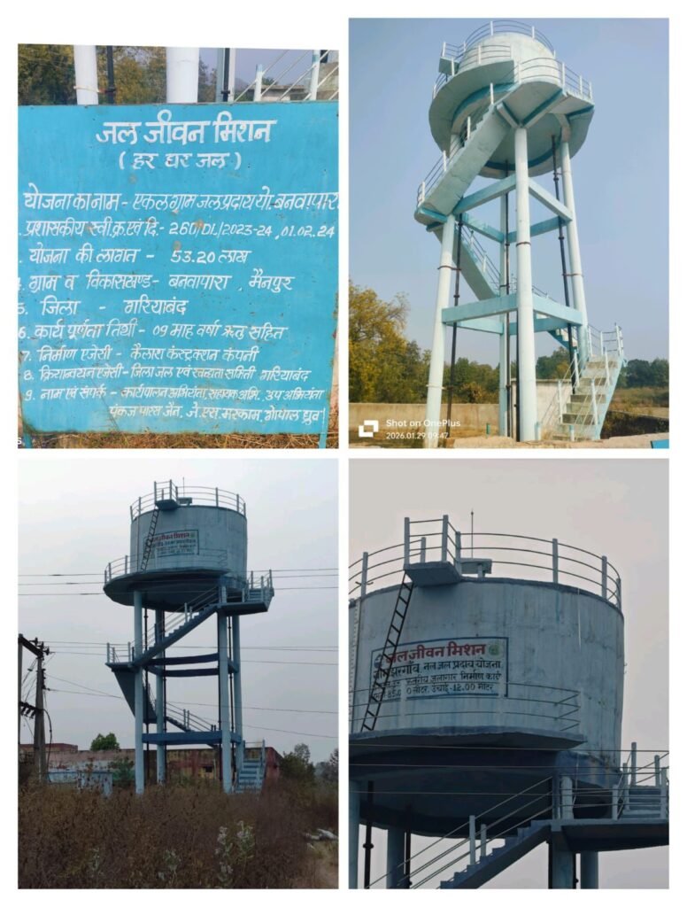 गरियाबंद|प्रधानमंत्री नरेंद्र मोदी की महत्वाकांक्षी जल जीवन मिशन (हर घर जल) योजना, जिसका उद्देश्य प्रत्येक ग्रामीण परिवार को शुद्ध पेयजल उपलब्ध कराना है, गरियाबंद जिले के मैनपुर विकास खंड में जमीनी स्तर पर पूरी तरह असफल होती नजर आ रही है। गांव-गांव में करोड़ों की लागत से बनी पानी टंकियां आज भी शो-पीस मॉडल बनकर खड़ी हैं, लेकिन ग्रामीणों के घरों तक पानी पहुंचने का सपना अब तक अधूरा है।