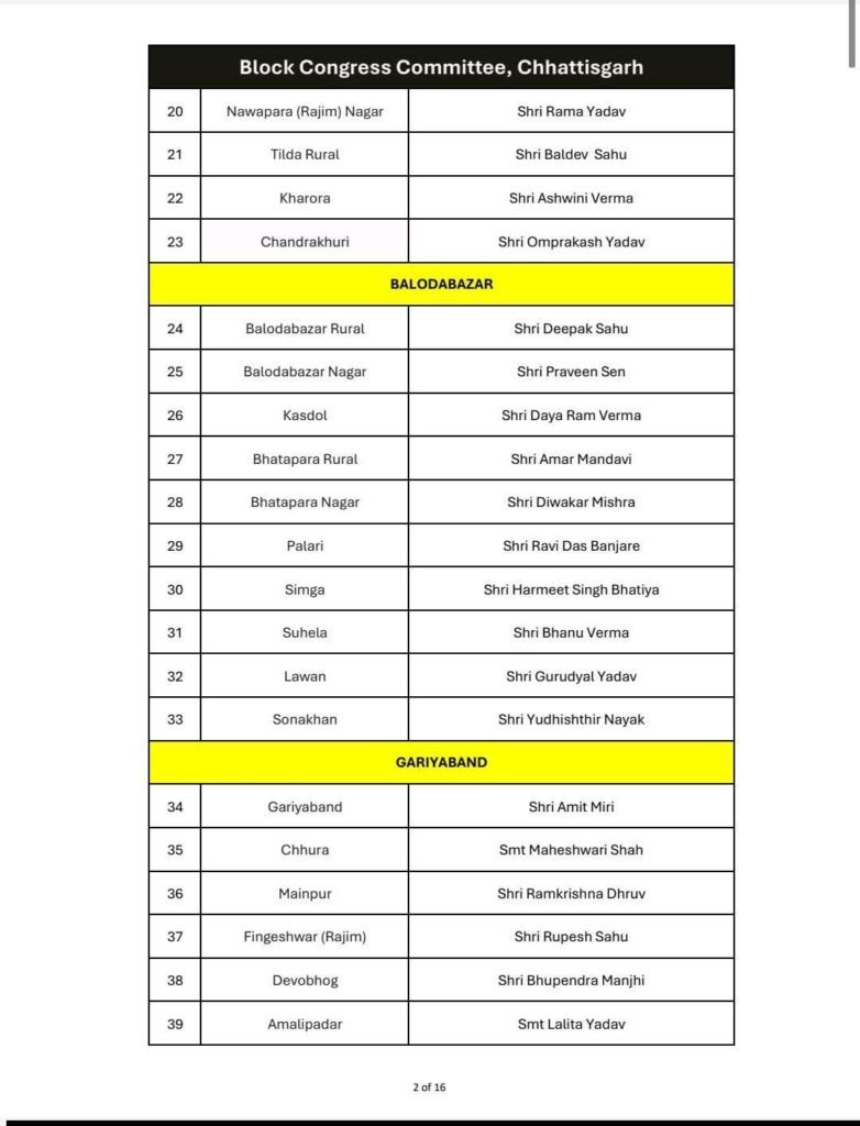 गरियाबंद जिले के ब्लॉक कांग्रेस कमेटी का अध्यक्ष नवा नियुक्त।