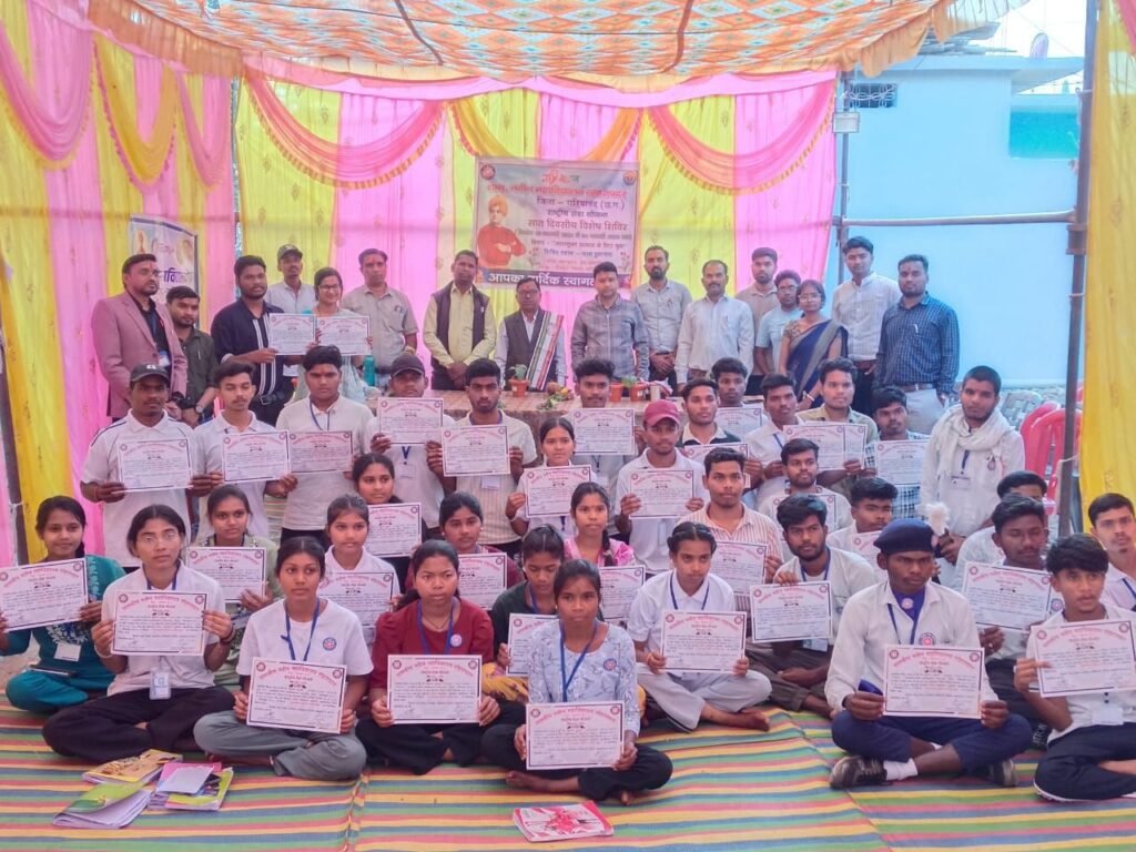 प्रमाण-पत्र वितरण, वृक्षारोपण एवं सम्मान समारोह के साथ शिविर का समापन हुआ। सातों दिन पूर्व स्वयंसेवक श्री विष्णु चरण सोना एवं श्री लोकेश नायक का सहयोग विशेष रूप से सराहनीय रहा।