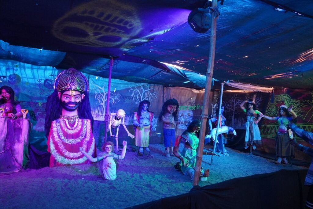 राजिम कुंभ मेले के नदी क्षेत्र में झांकियां बनीं आकर्षण का केंद्र।