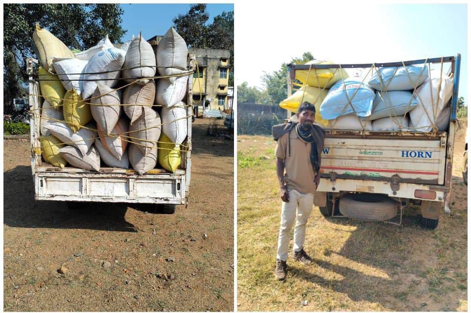 01) बोलेरो पीकअप वाहन क्रमांक सीजी.22-एम-4140 (70 कट्टा)