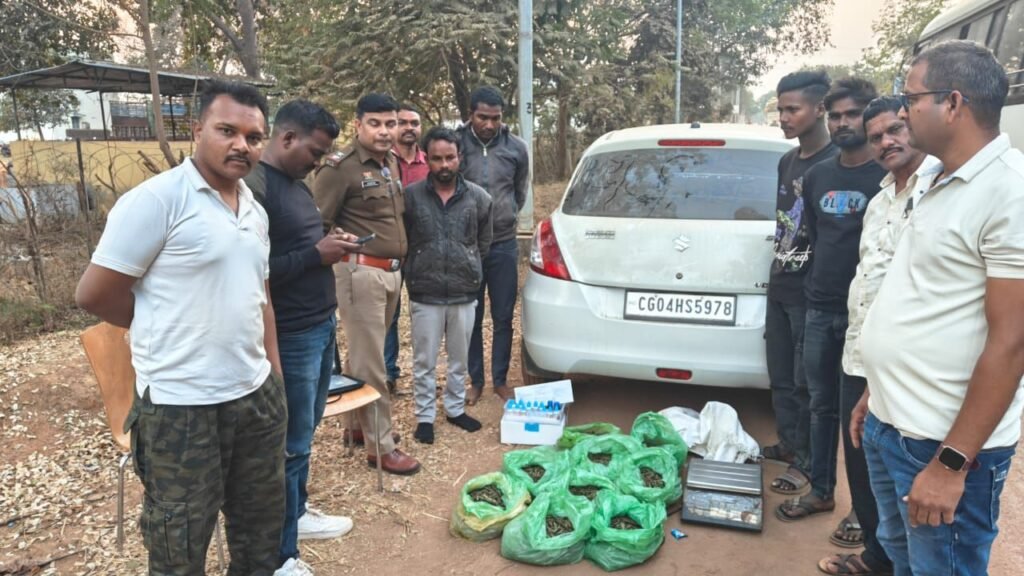 *जप्त सामग्री-* 09 किलो ग्राम गांजा की कीमती 04 लाख 45 हजार रूपये व घटना में प्रयुक्त कार स्विफ्ट क्रमांक सीजी 04 एच एस 5978 कीमती 02 लाख रूपये कुल जुमला कीमती 06 लाख 45 हजार रूपये।